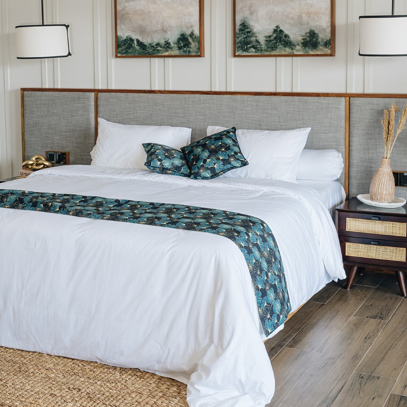 Create a serene atmosphere in your home with the IndoLinen Blue Petal Ginkgo Leaves Runner Set. This premium set includes a bed runner and cushion cover made from high-quality, eco-friendly cotton, featuring a delicate blue Ginkgo leaf design. The soft blue tones and nature-inspired pattern add a peaceful, calming effect to any room, making this set ideal for bedrooms, living rooms, or dining areas. Indolinen focuses on combining the best quality materials with eco-friendly practices, ensuring that each product is as sustainable as it is stylish. This high-quality runner set brings a touch of nature indoors while offering premium craftsmanship and durability. Easy to buy online, this set is perfect for those looking to add a stylish, eco-friendly, and nature-inspired element to their home decor.