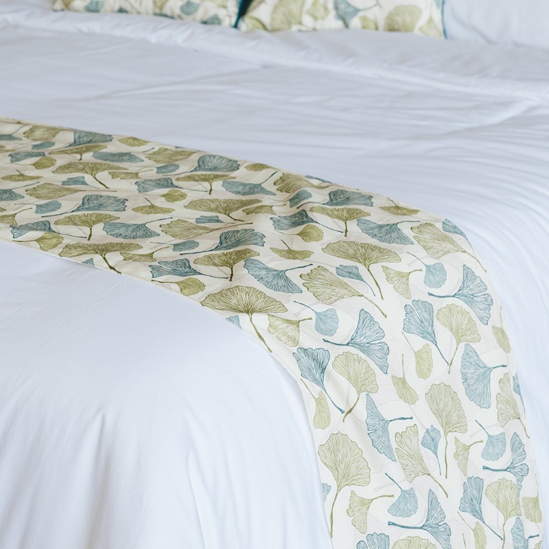 Green Ginkgo Leaves Runner Set - 240x40cm-and-40x40cm