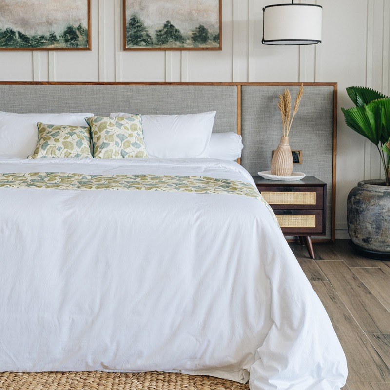 Bring nature into your home with the IndoLinen Green Ginkgo Leaves Runner Set. This high-quality set includes a stylish bed runner and cushion cover made from eco-friendly cotton, featuring a beautiful green Ginkgo leaf design. The calming green tones and intricate pattern add a fresh, natural touch to your decor, making it perfect for bedrooms, living rooms, or even dining spaces. Indolinen is committed to providing premium products that combine style with sustainability, ensuring that this runner set is both eco-friendly and durable. Whether you’re looking to refresh your home decor or add a touch of nature-inspired elegance, this high-quality runner set is the ideal solution. Easy to buy online, this stylish, eco-friendly set is a must-have for anyone looking to enhance their home with high-quality, nature-inspired decor.